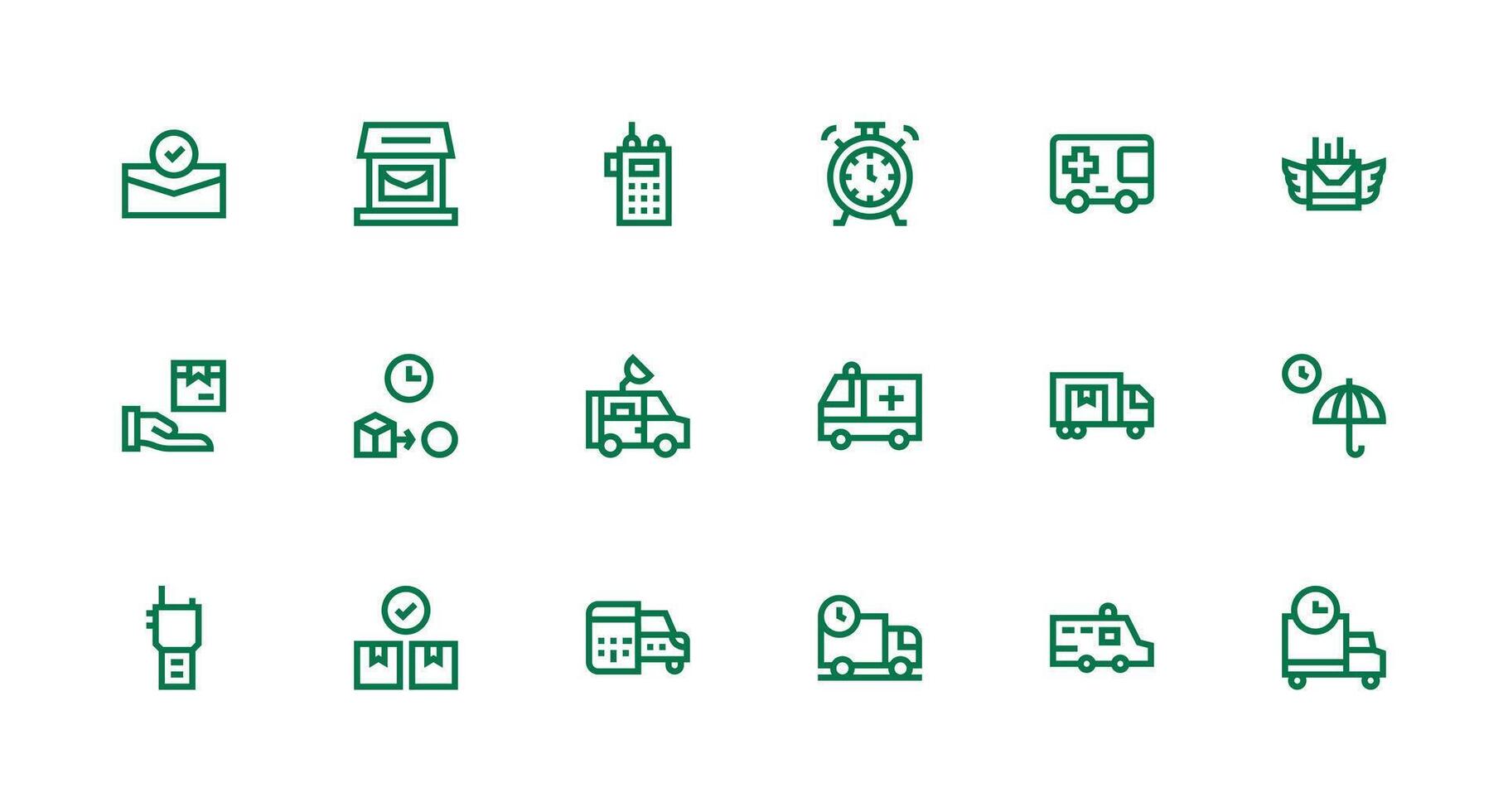 18 Icons for Dispatch in Strong Stroke Line Format Icon Set for Projects vector