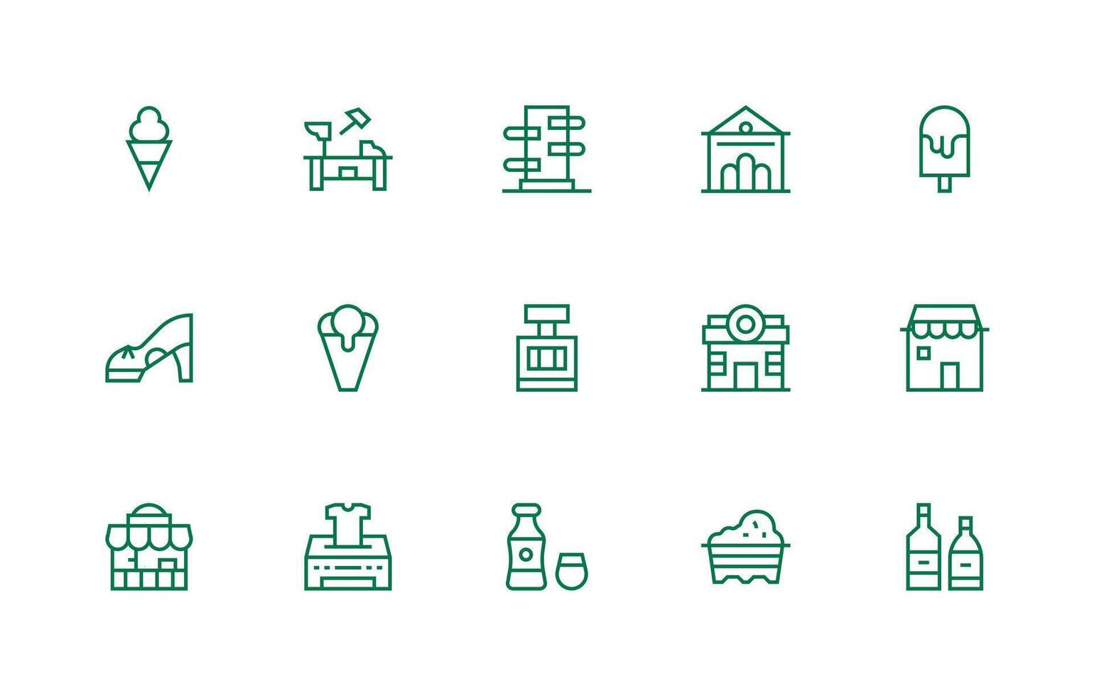 Shop Icon Set with 15 Regular Line Graphics Balanced Icon Set for Functional Design vector