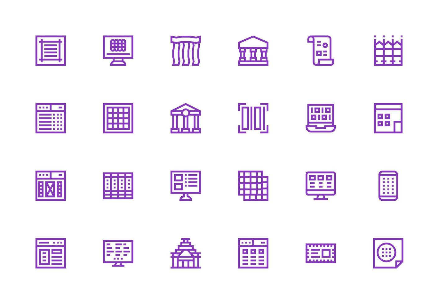 Thick Line Line Icons from Columns Set with 24 Vectors Detailed Icon Collection for Design Systems Free Vector