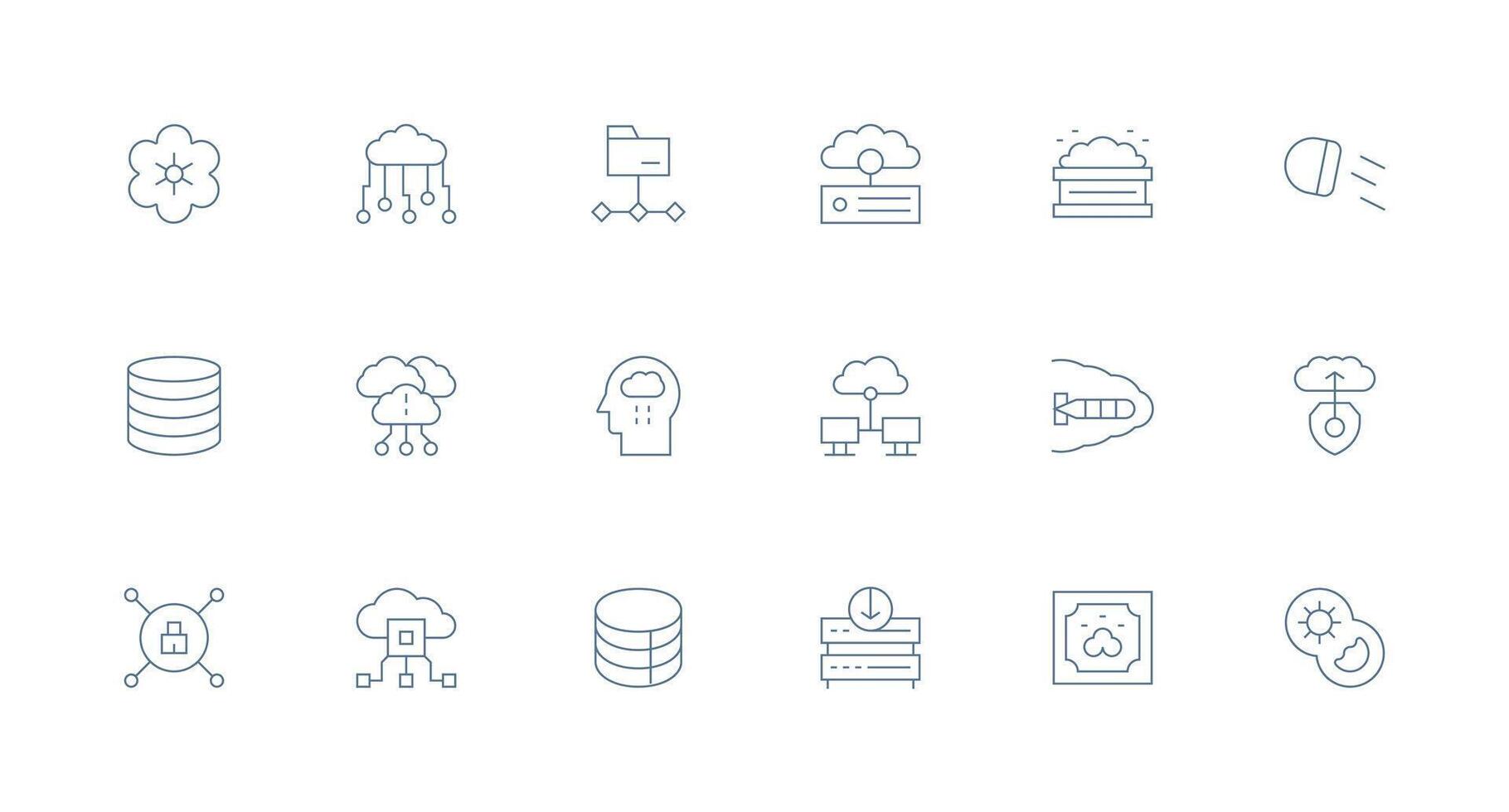 Cloud Computing Set with 18 Minimal Line Icons Display Icon Pack Free Vector