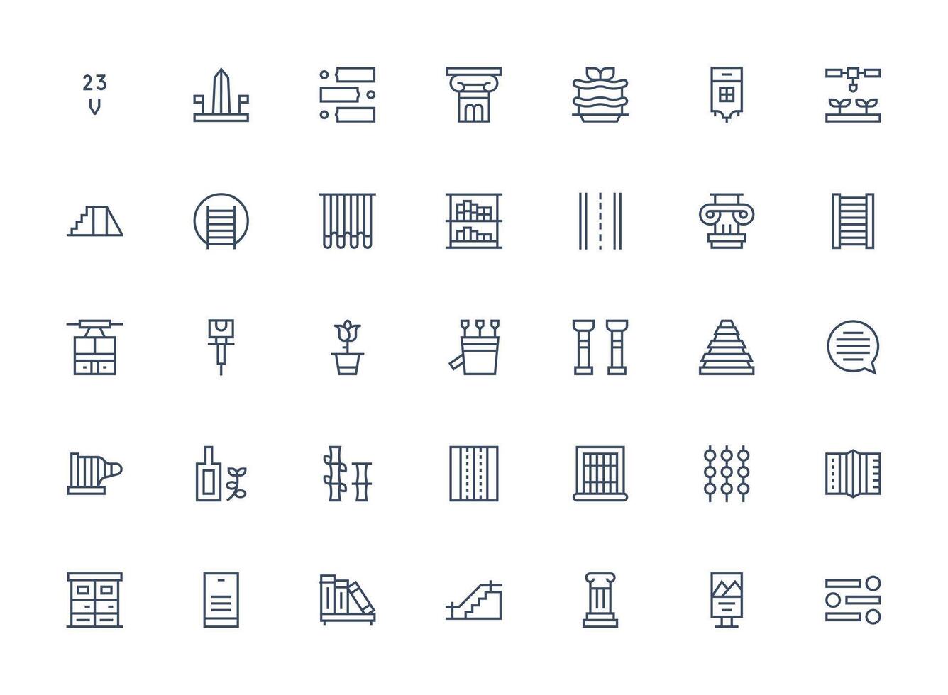 Vertical Icon Set with 35 Regular Clean Line Graphics Core Icon Collection for Daily Tasks vector