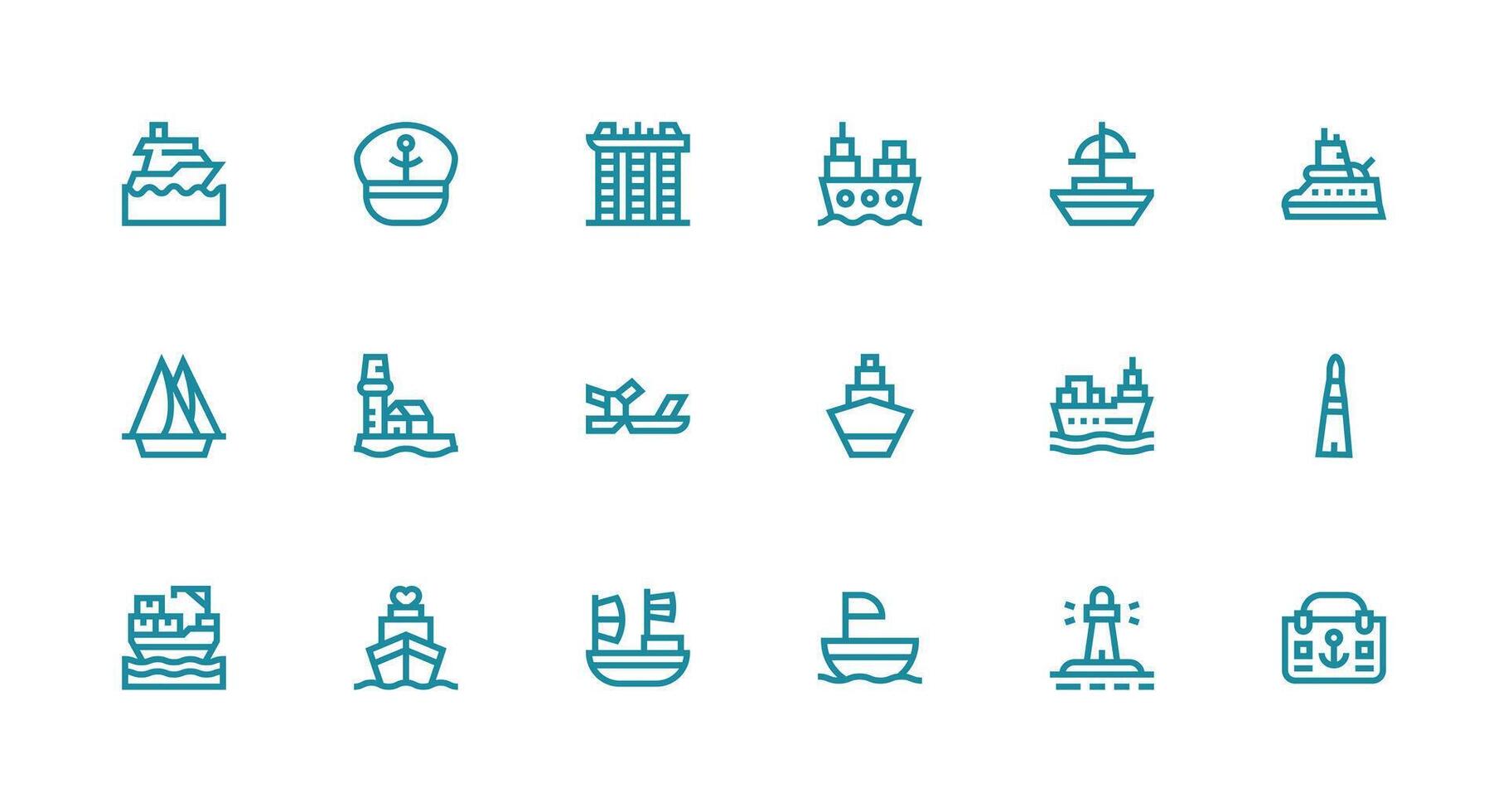 18 Strong Stroke Line Designs for Harbor Icons Simple Icons for Interface and Wireframes vector