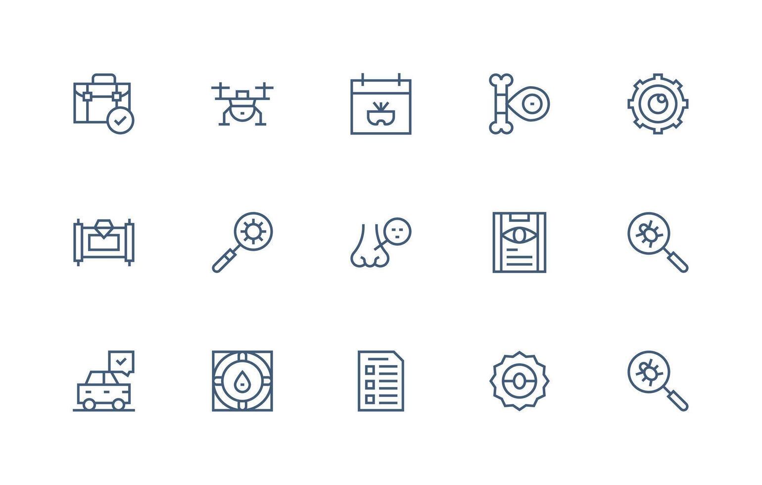 Inspection Set with 15 Regular Line Icons Clear and Concise Icon Set Collection vector