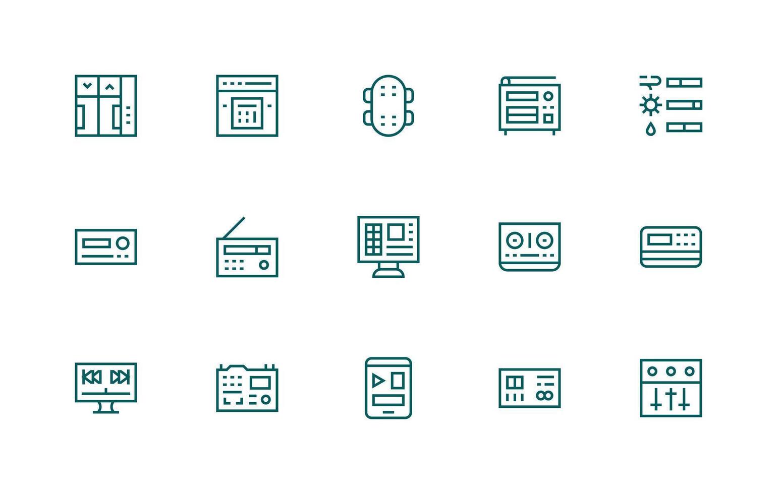 Controls Icon Collection with 15 Regular Line Designs Responsive Icon Set for Flexible Layouts vector