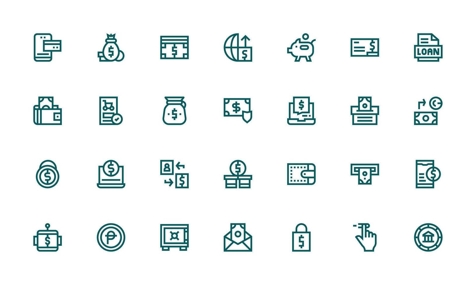 Banking Design Icons featuring 28 in Bold Line Style Sharp Icons for Presentations vector