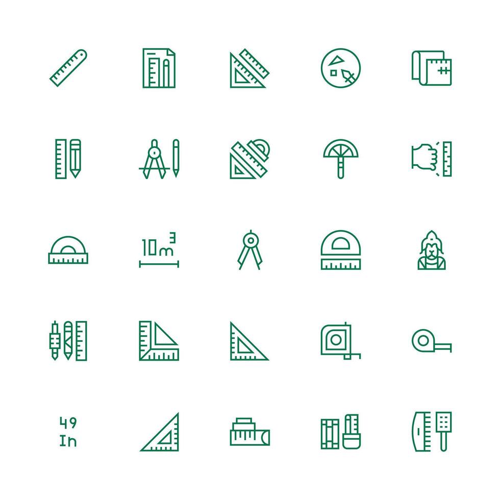 25 Icons for Ruler in Medium Stroke Outline Format Balanced Icon Set for Functional Design vector