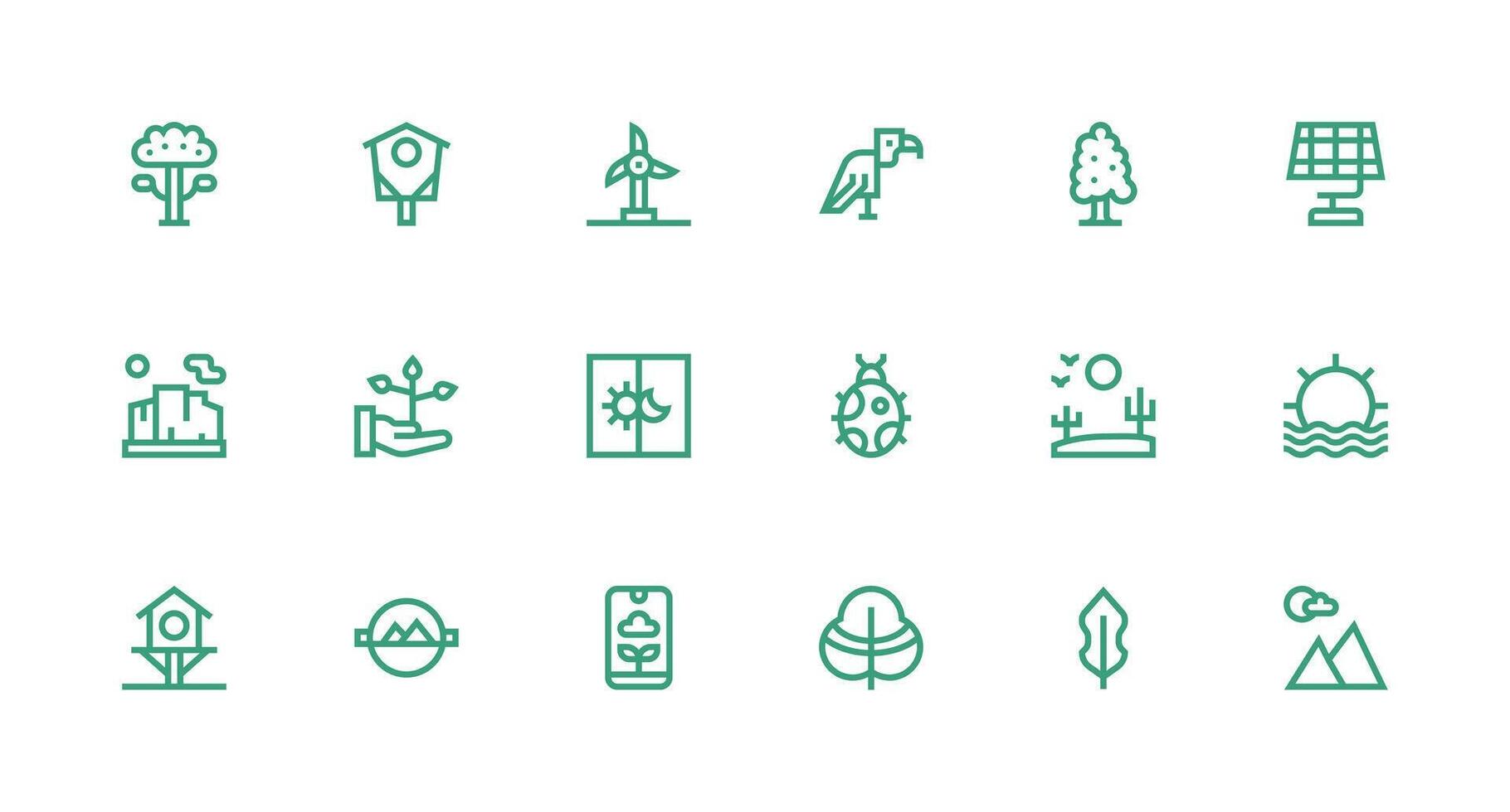 Environment Icon Set with 18 Strong Stroke Line Graphics Minimal Icon Set for Interface Projects vector