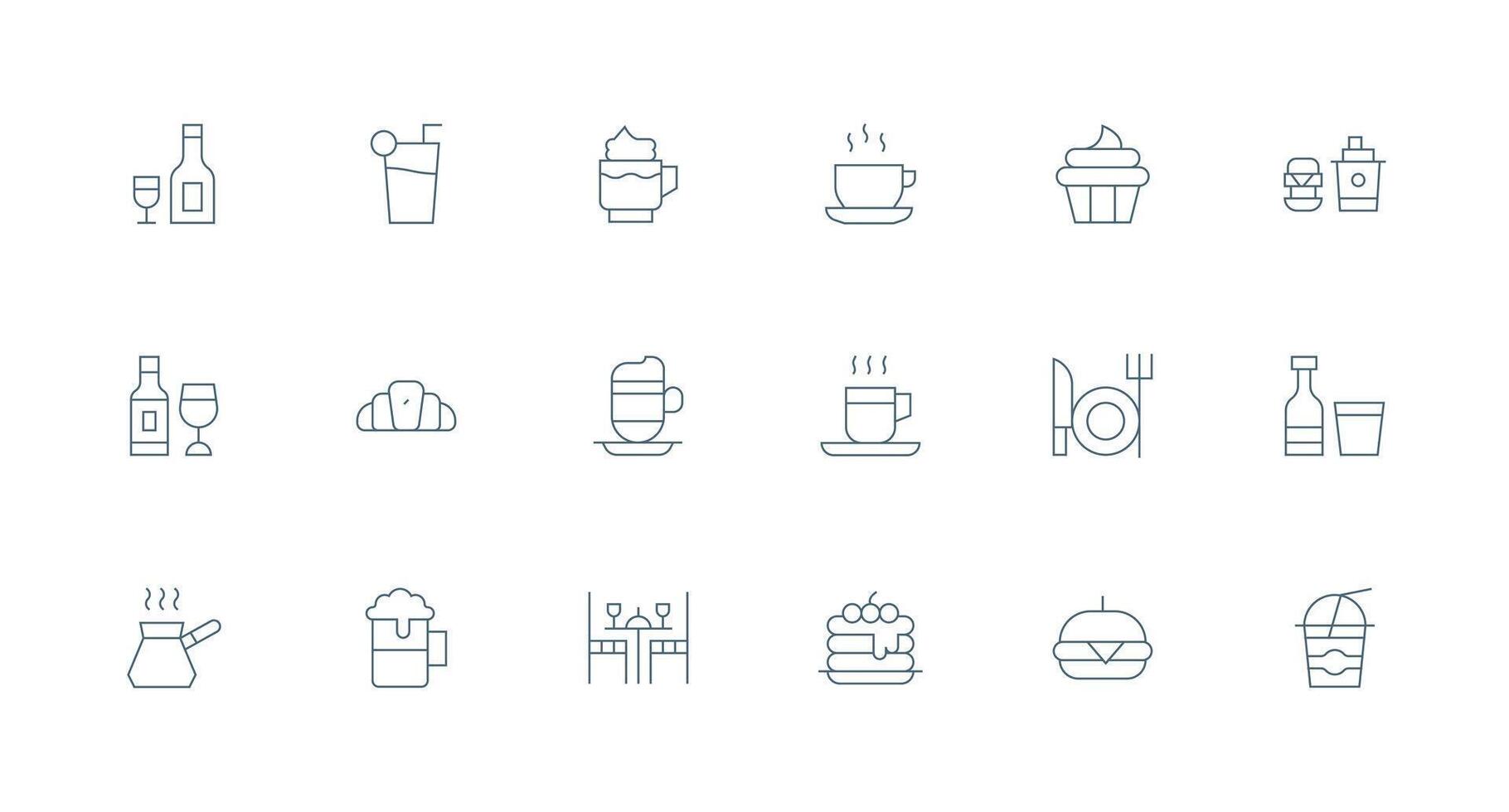 Cafe Icon Design Icons featuring 18 in Minimal Line Style Scalable Icons for Cross-Platform Interfaces Free Vector