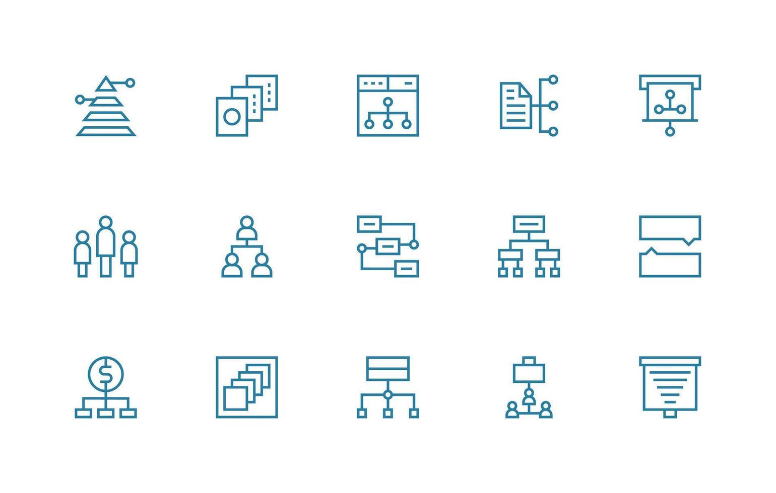 Hierarchy Design Icons featuring 15 in Regular Line Style Multi-Purpose Icon Set Free Vector