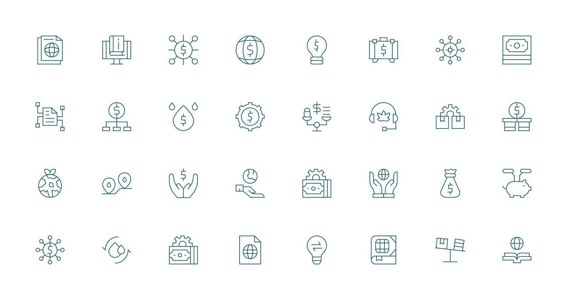 Resources Design Icons featuring 32 in Thin Line Style Organized Icon Pack for Quick Access vector