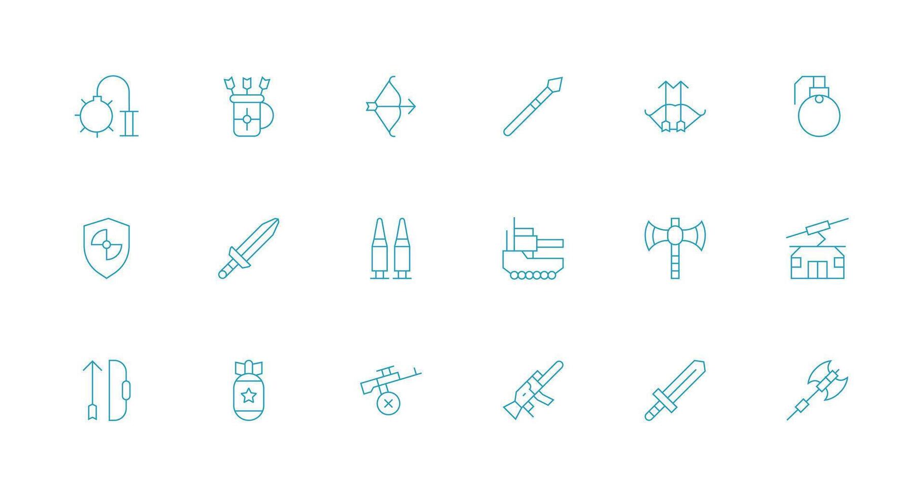 Weapon featuring 18 Icons in Minimal Line Design Responsive Icon Set for Flexible Layouts vector