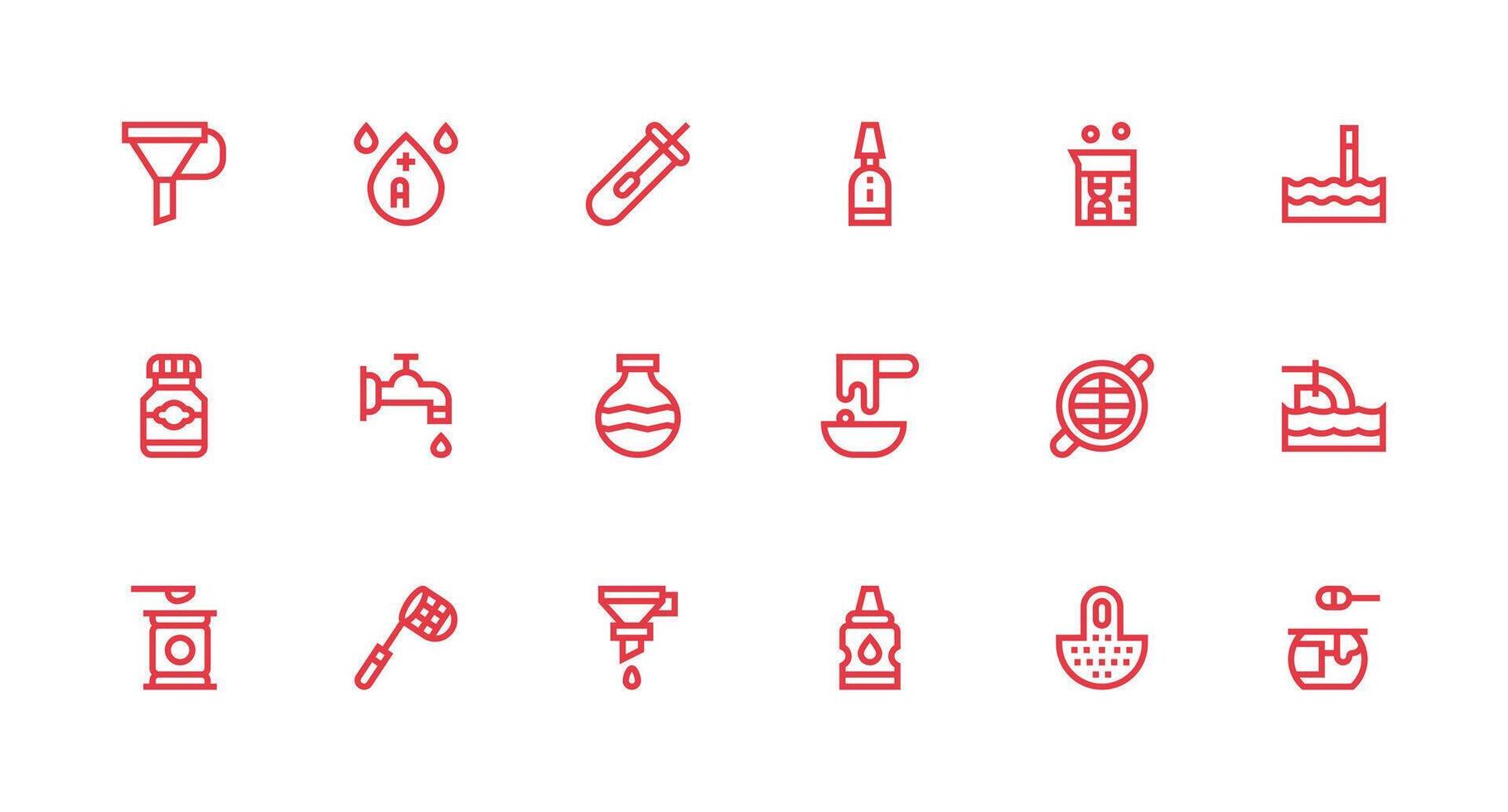 Liquid Icon Set with 18 Strong Stroke Line Graphics Icon Pack for UI vector