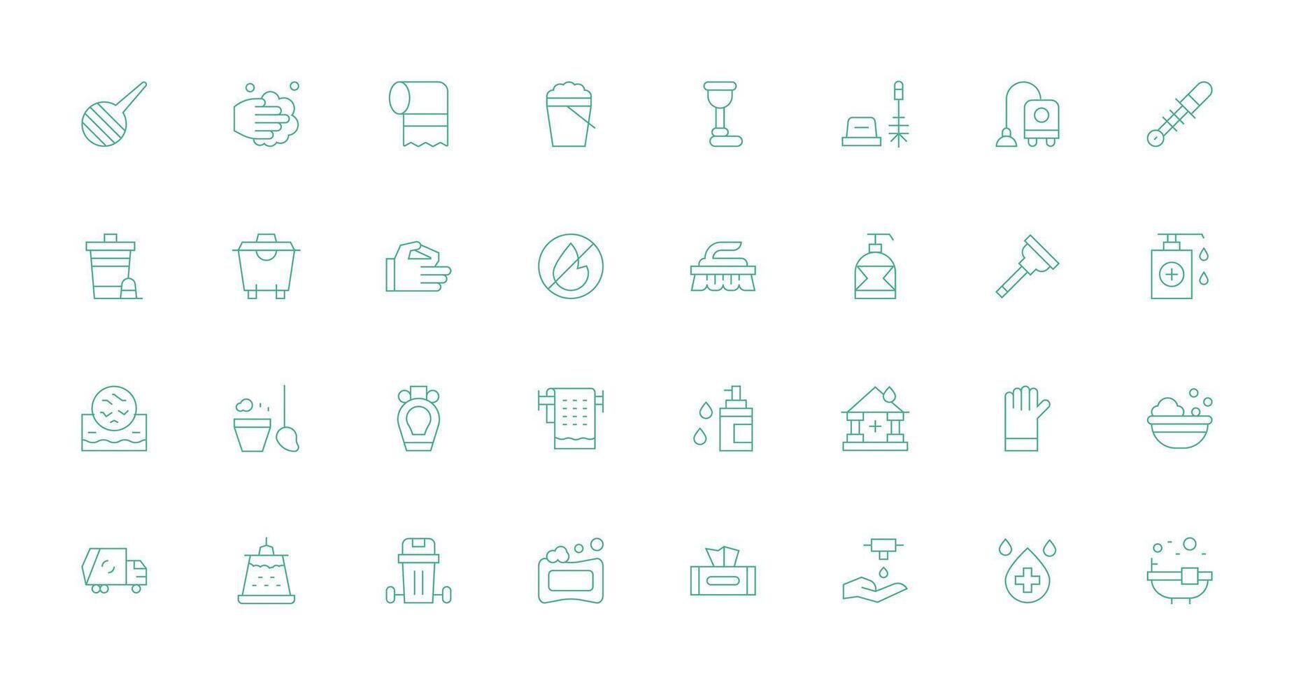 Sanitation Design Icons featuring 32 in Thin Line Style Balanced Icon Set for Functional Design vector