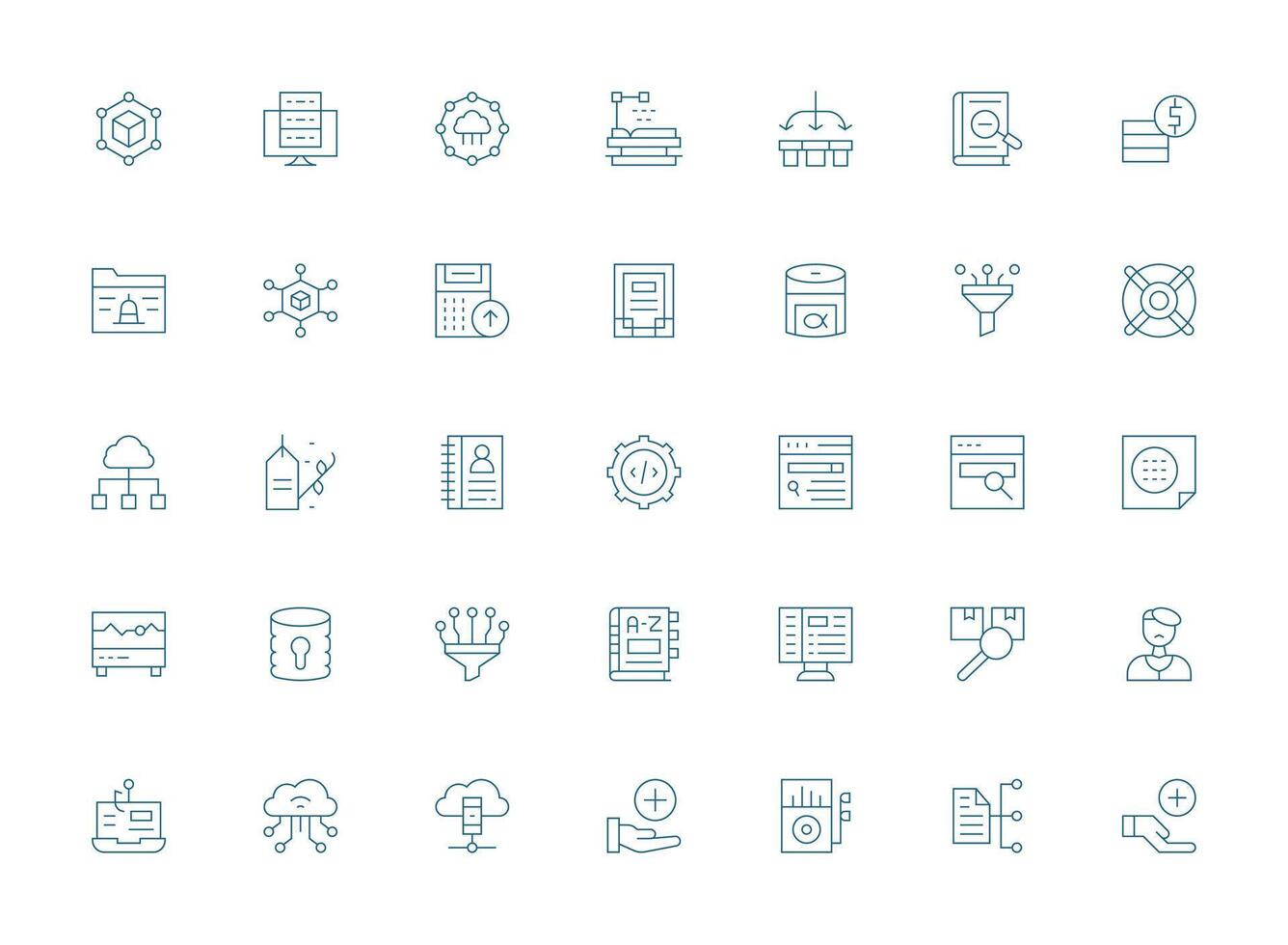 35 Light Line Style Icons from Database Collection Functional Icon Series vector
