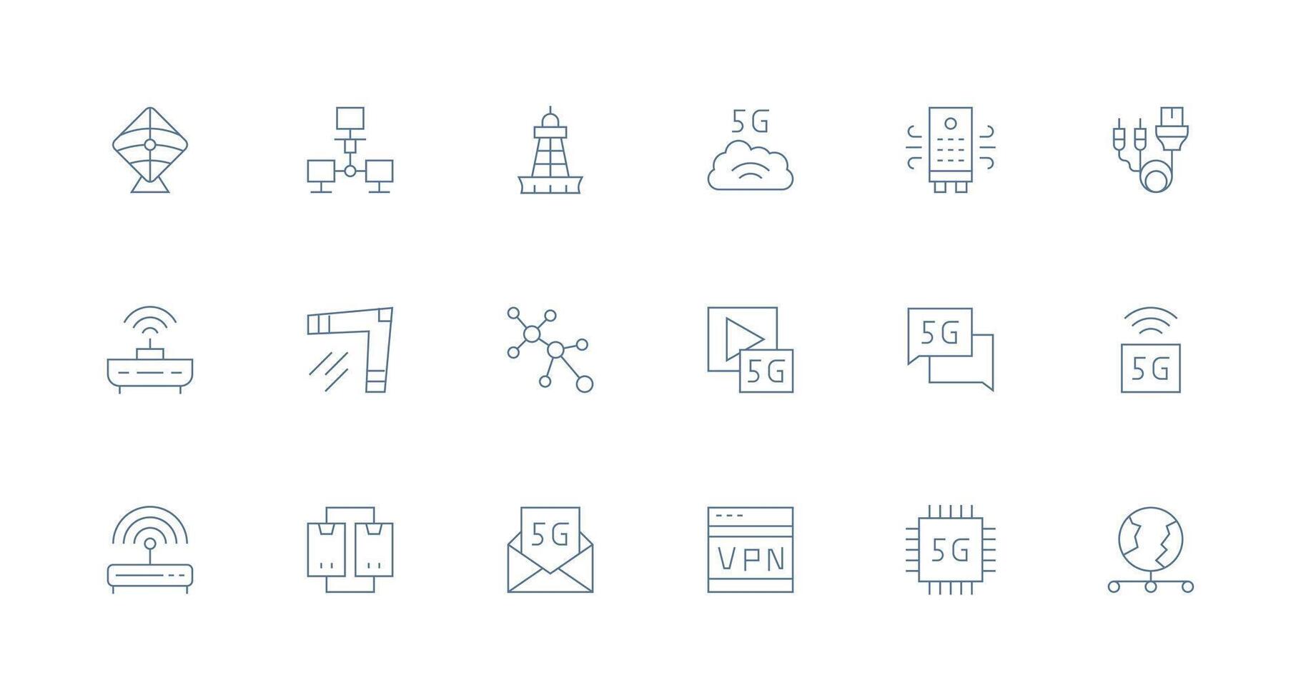 Data Transmission Icon Set with 18 Minimal Line Graphics Icon Set Free Vector