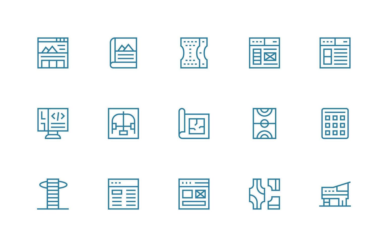 Layout Set with 15 Regular Line Icons Professional Icon Set Free Vector