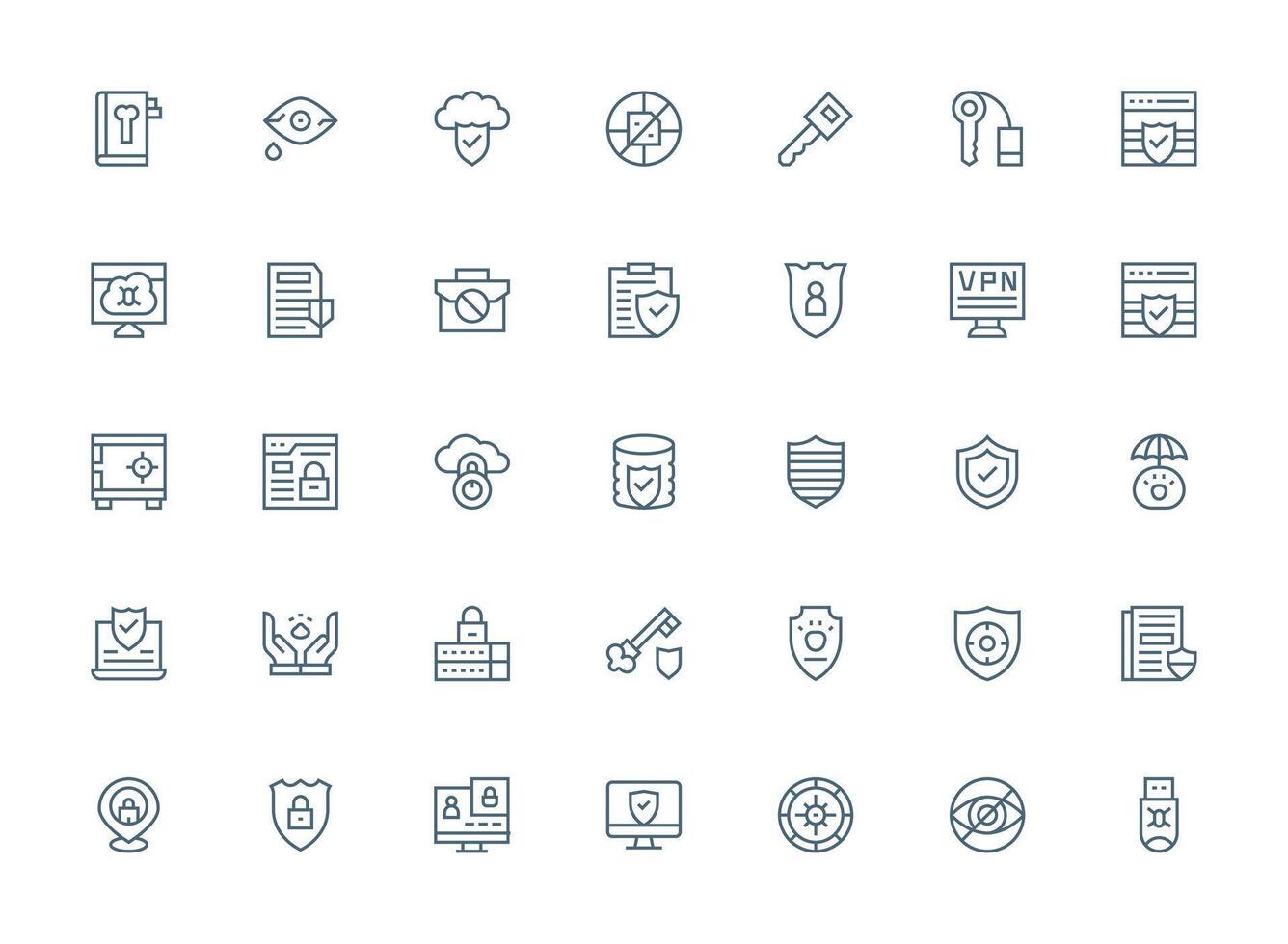 Data Protection Design Icons featuring 35 in Regular Clean Line Style Scalable Icons for Cross-Platform Interfaces vector
