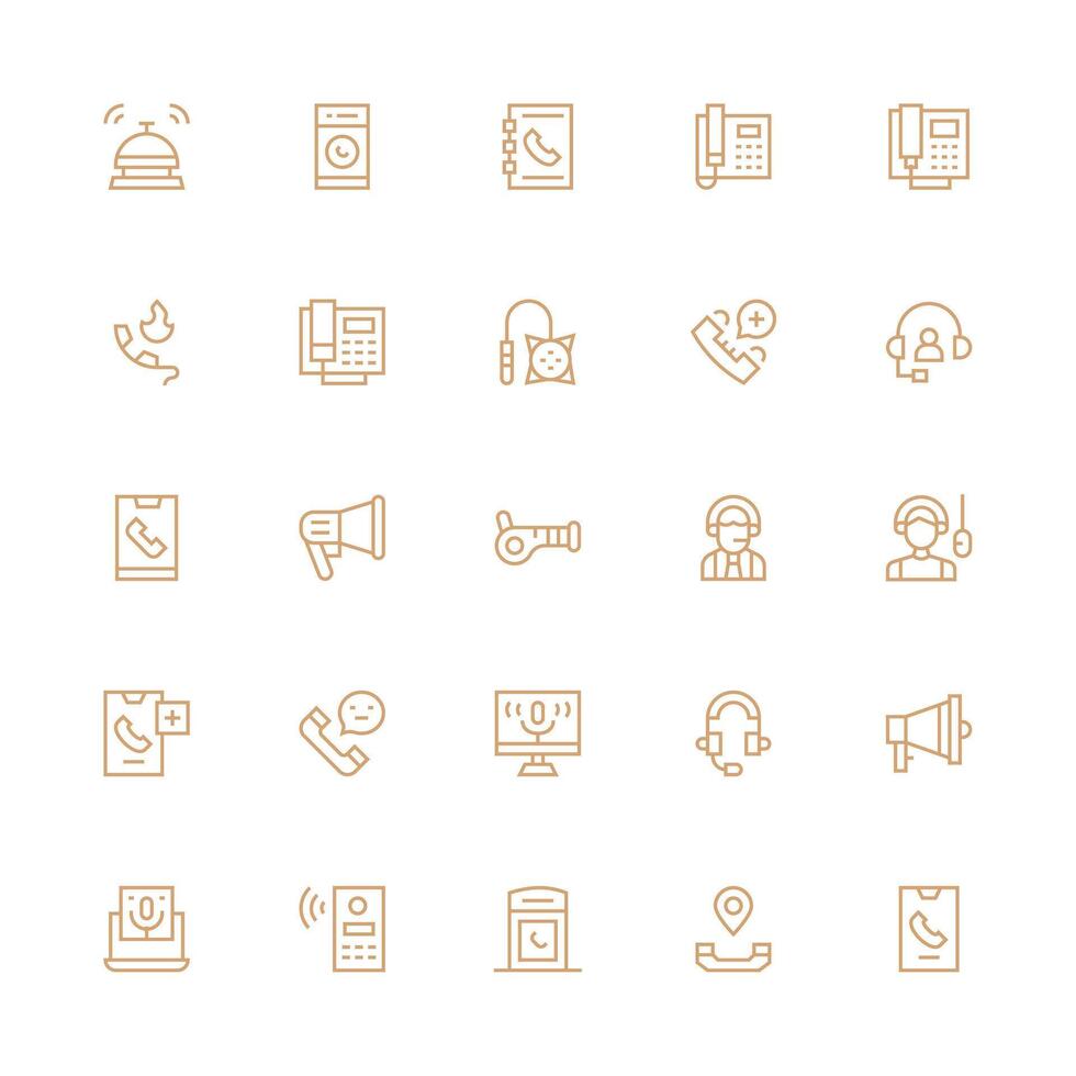 25 Medium Stroke Outline Vectors for Call Theme Simple Icons for Interface and Wireframes