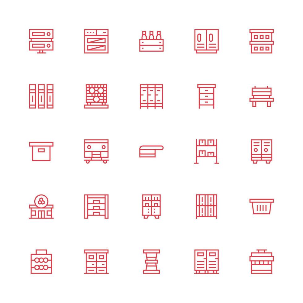 Storage Unit Icon Set with 25 Medium Stroke Outline Graphics Full Icon Library for UI Designers Free Vector