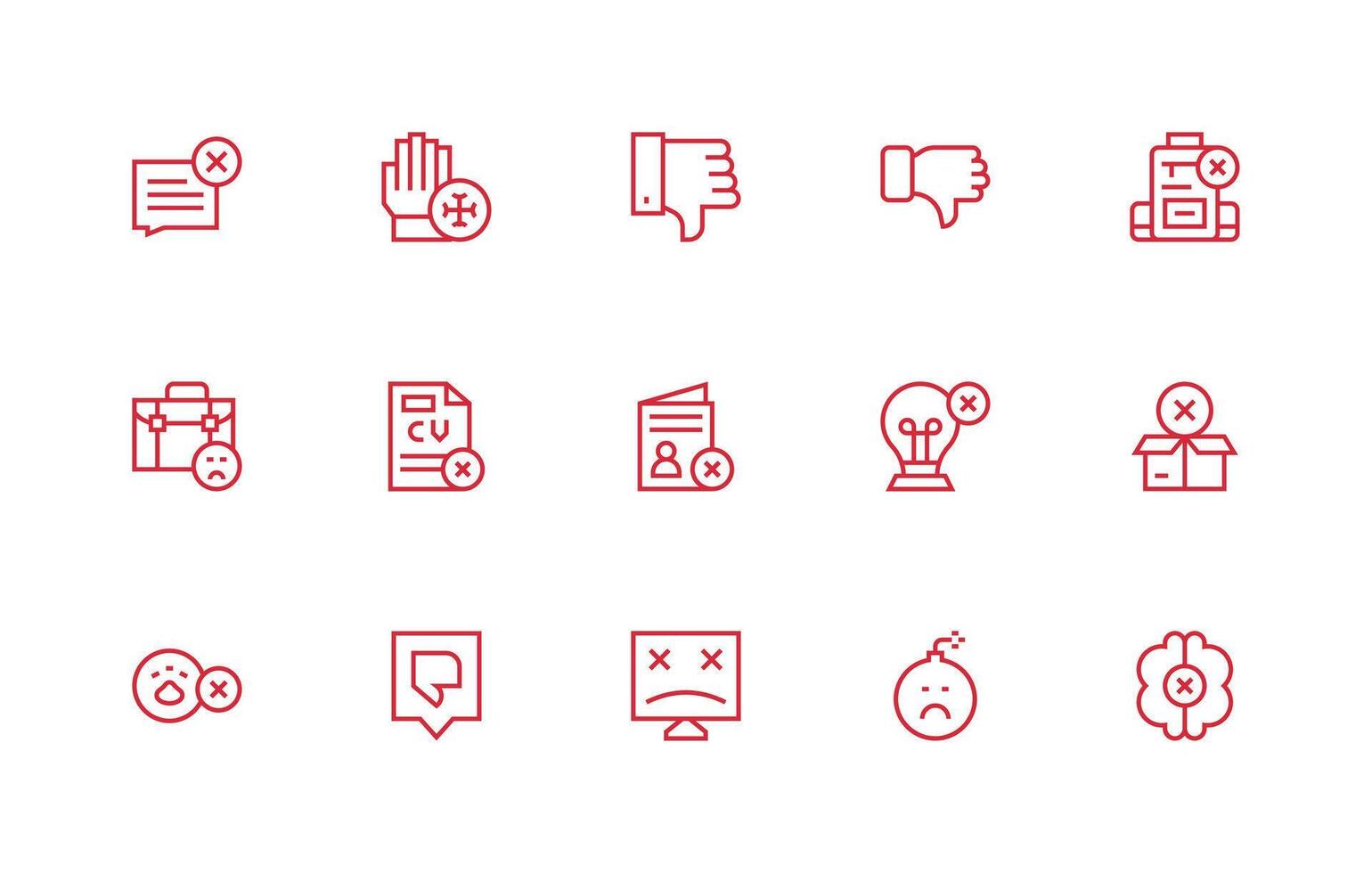 15 Icons for Unsuccessful in Regular Line Format UI and UX Focused Icon Collection Free Vector