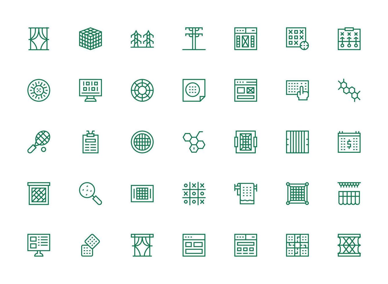 35 Icons for Grid in Regular Clean Line Format Clear and Concise Icon Set Collection Free Vector