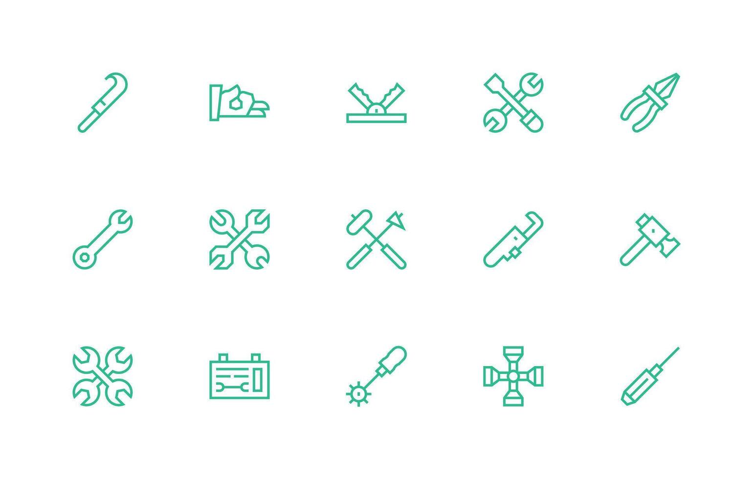 Wrench Design Icons featuring 15 in Regular Line Style Fully Editable Icon Set for Web vector