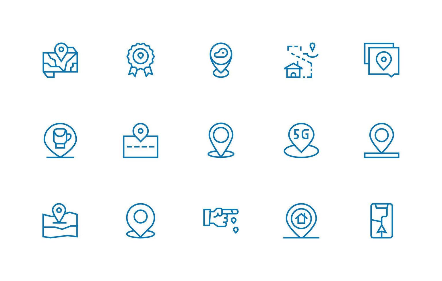 Geolocation Icon Set with 15 Regular Line Graphics Clean Icon Collection for Web Use vector