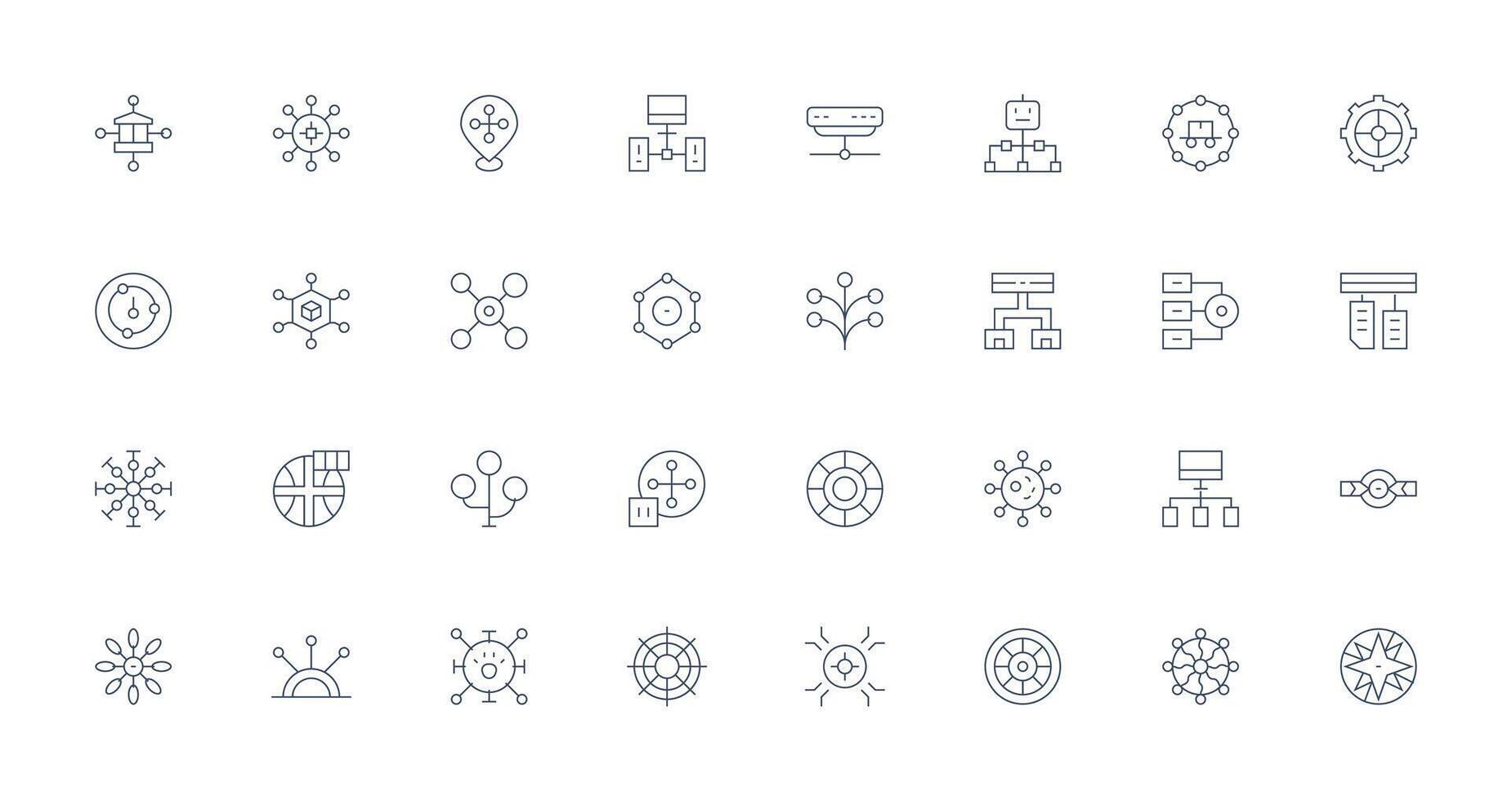 Hub Visual Pack containing 32 Thin Line Icons Complete Icon Bundle for Web Design vector