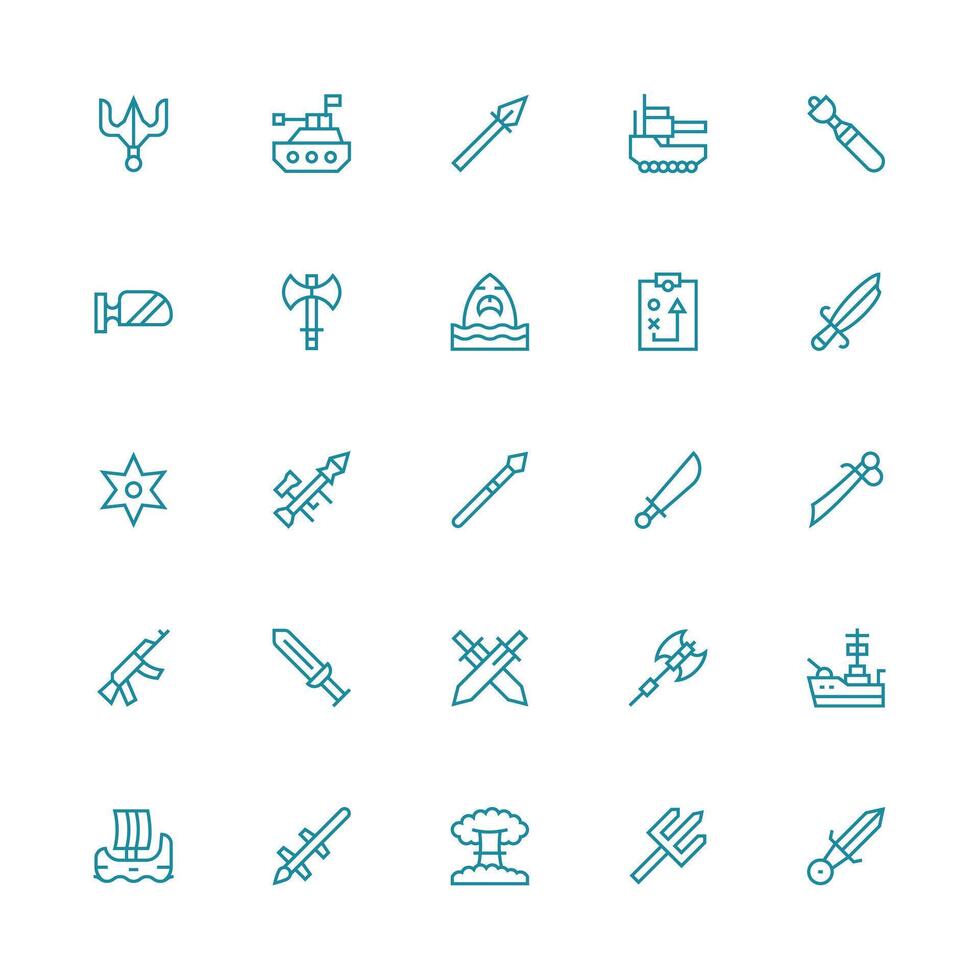 Attack featuring 25 Icons in Medium Stroke Outline Design Clean Icon Collection for Web Use vector