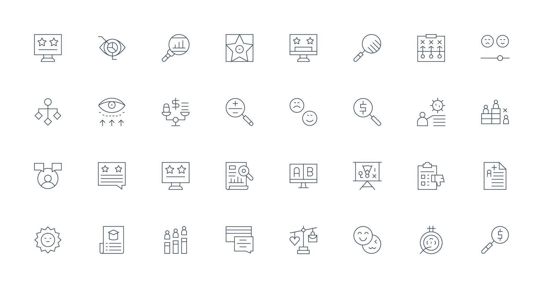 Thin Line Style Evaluation Icons with 32 Vectors Interface Icon Collection for Daily Projects Free Vector