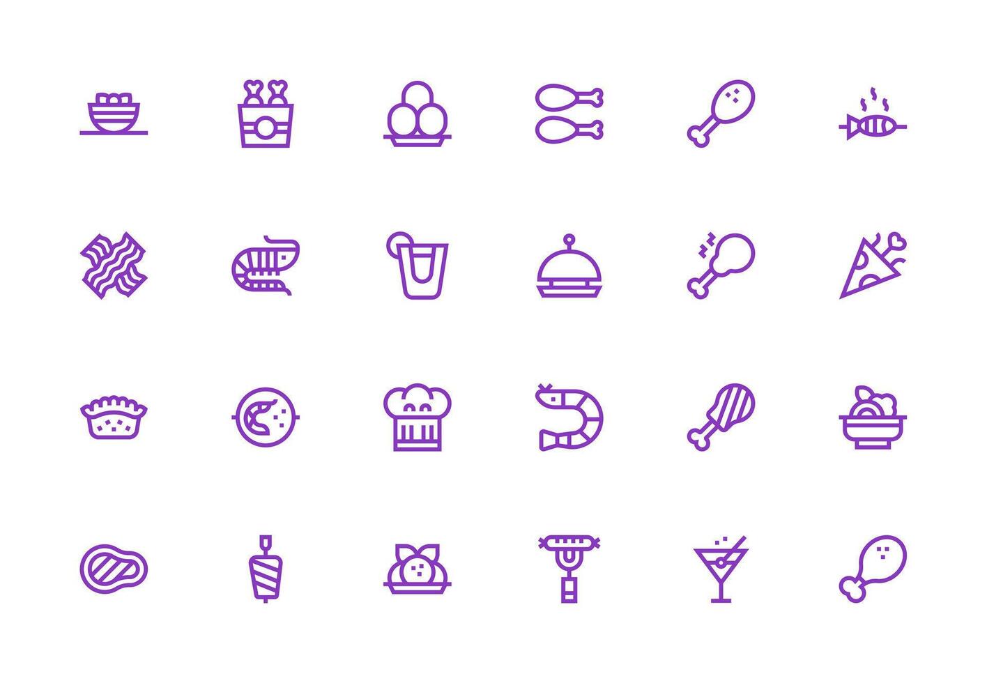 Appetizer Icon Set with 24 Thick Line Line Graphics Icon Set for Web vector