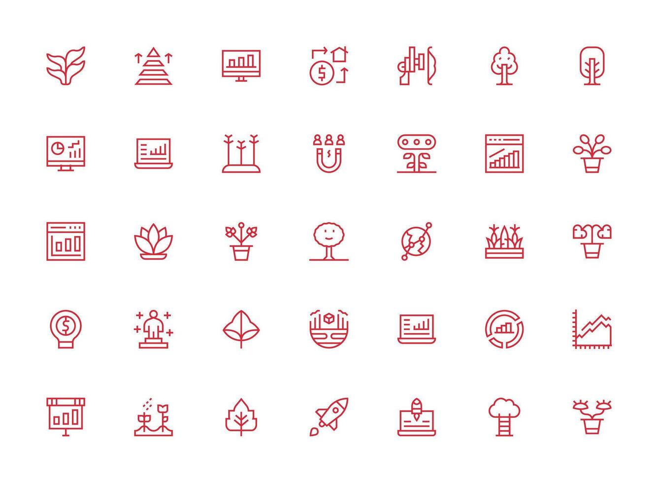 Growth Visual Pack containing 35 Regular Clean Line Icons Quick Access Icons for UI Development vector