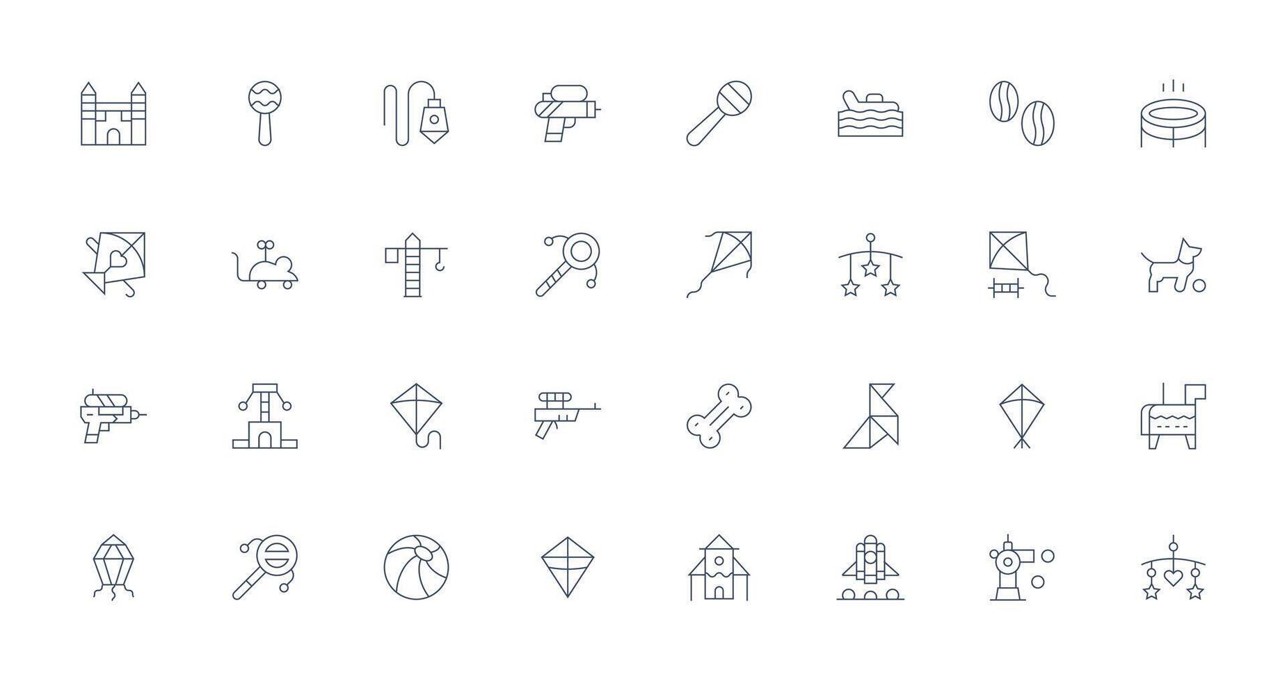 Toy Icon Set with 32 Thin Line Graphics Smart Icon Collection Free Vector