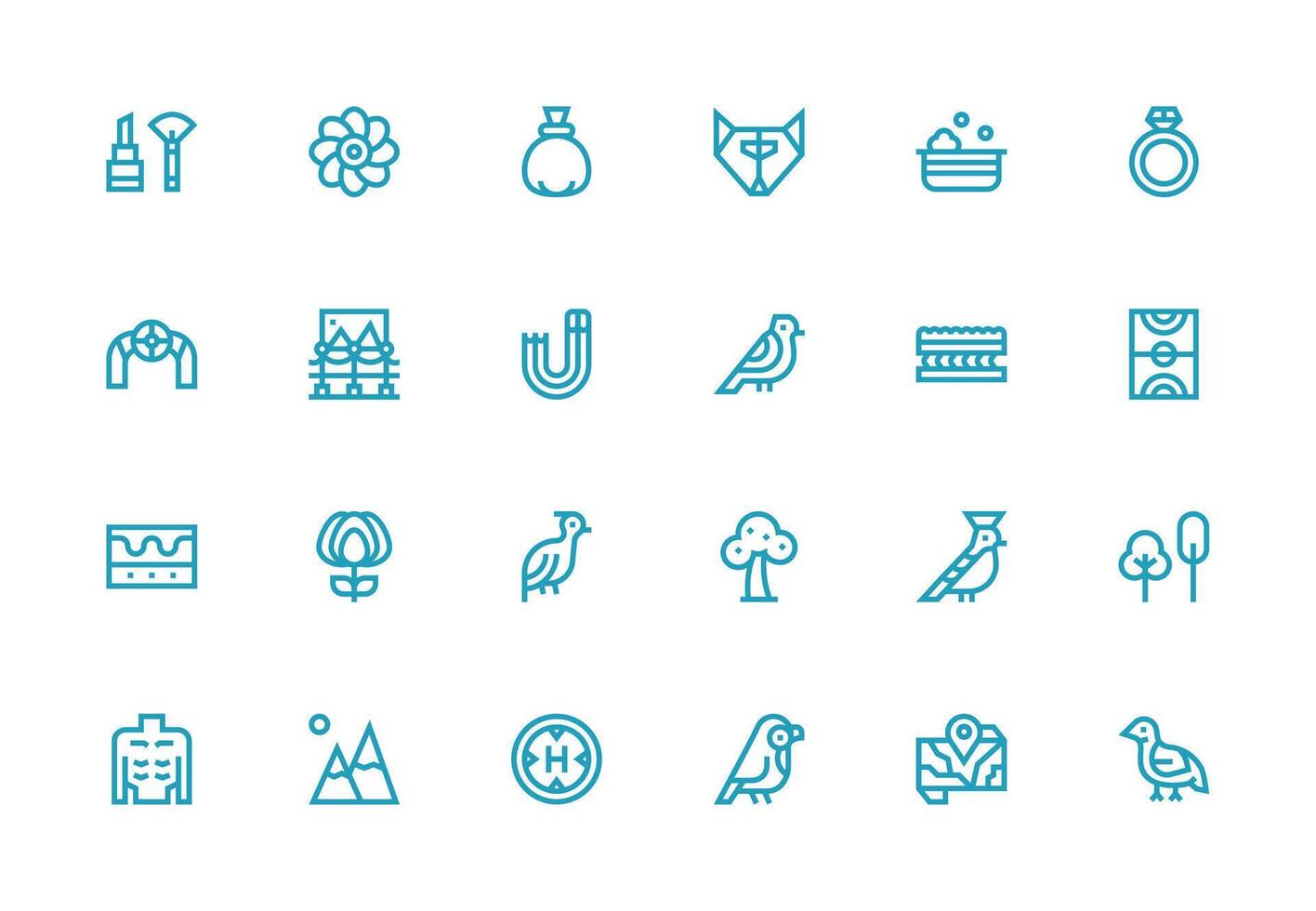 Contour Icon Set with 24 Thick Line Line Graphics Clean Icon Collection for Web Use vector