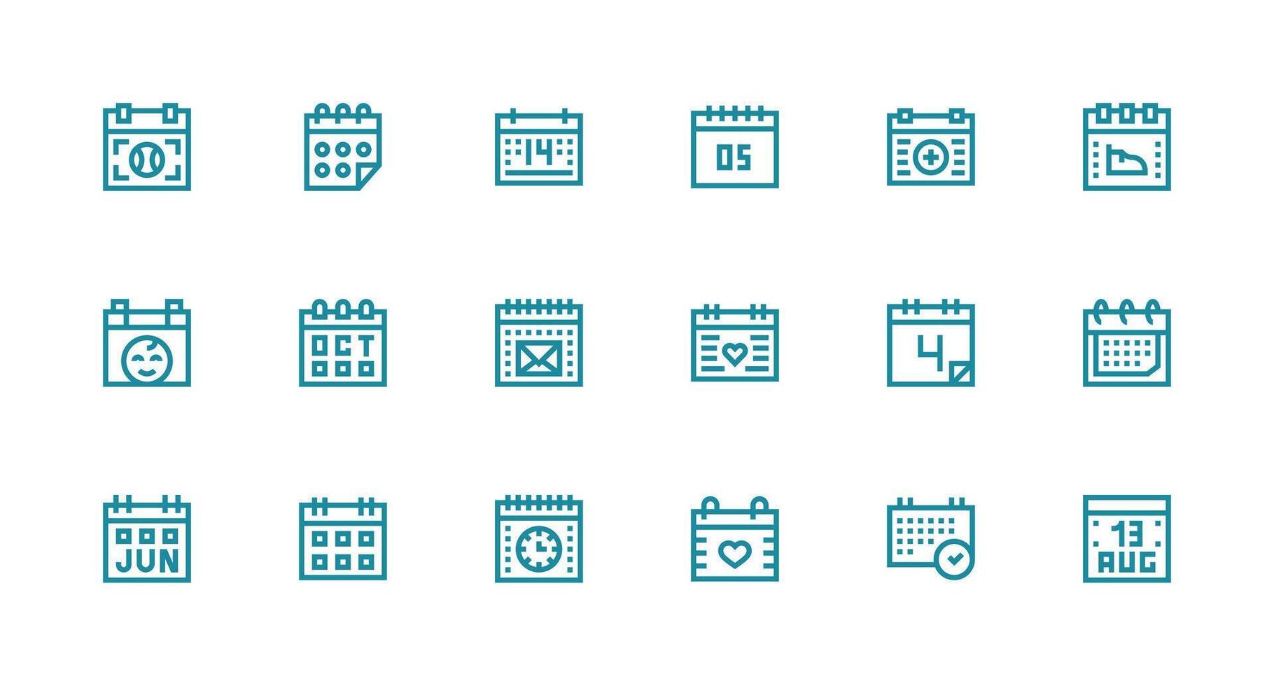 Date Design Icons featuring 18 in Strong Stroke Line Style High-Resolution Icons for Any Platform Free Vector
