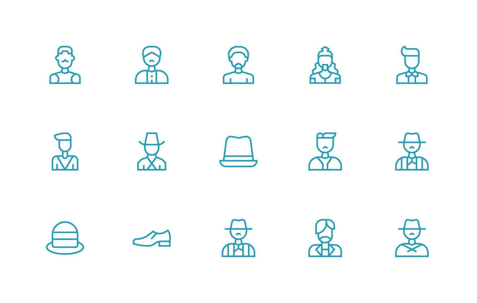 15 Icons for Gentleman in Regular Line Format Layout Icon Collection vector