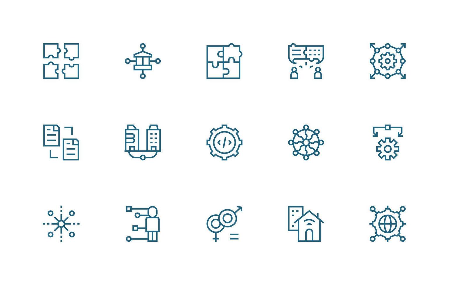Integration featuring 15 Icons in Regular Line Design Style Icon Set vector