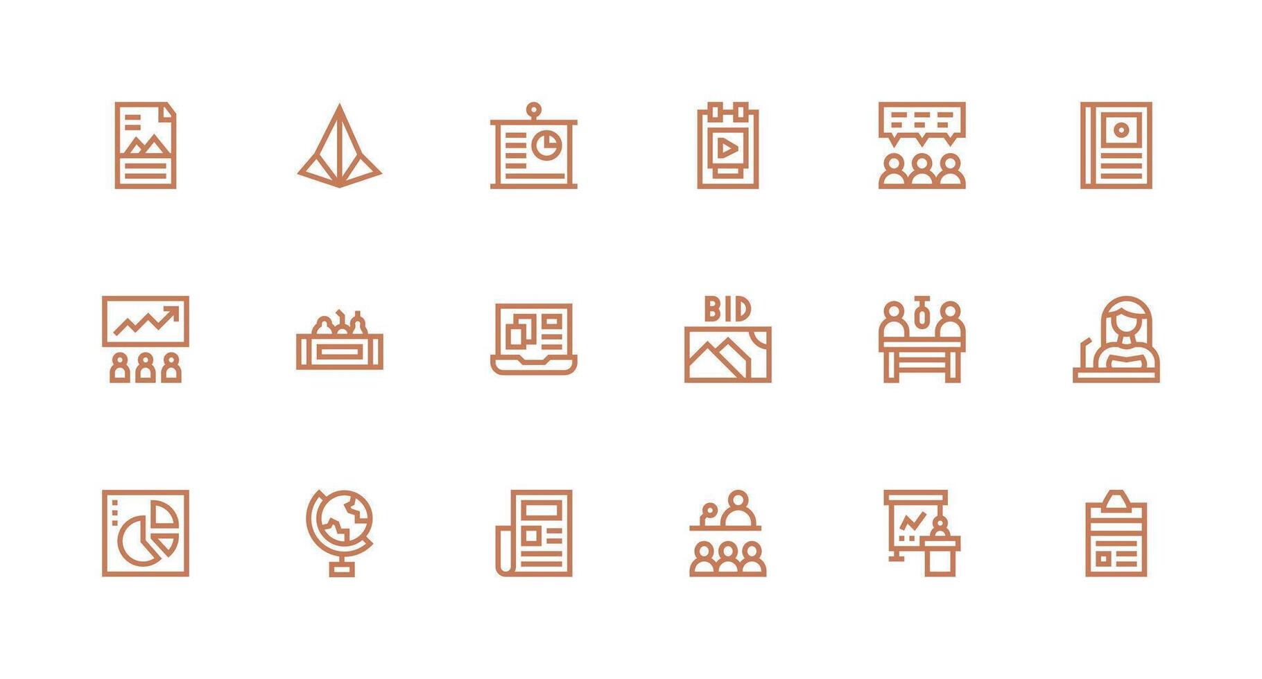 Presentation Design Icons featuring 18 in Strong Stroke Line Style Simplified Icon Pack for Visual Tools vector