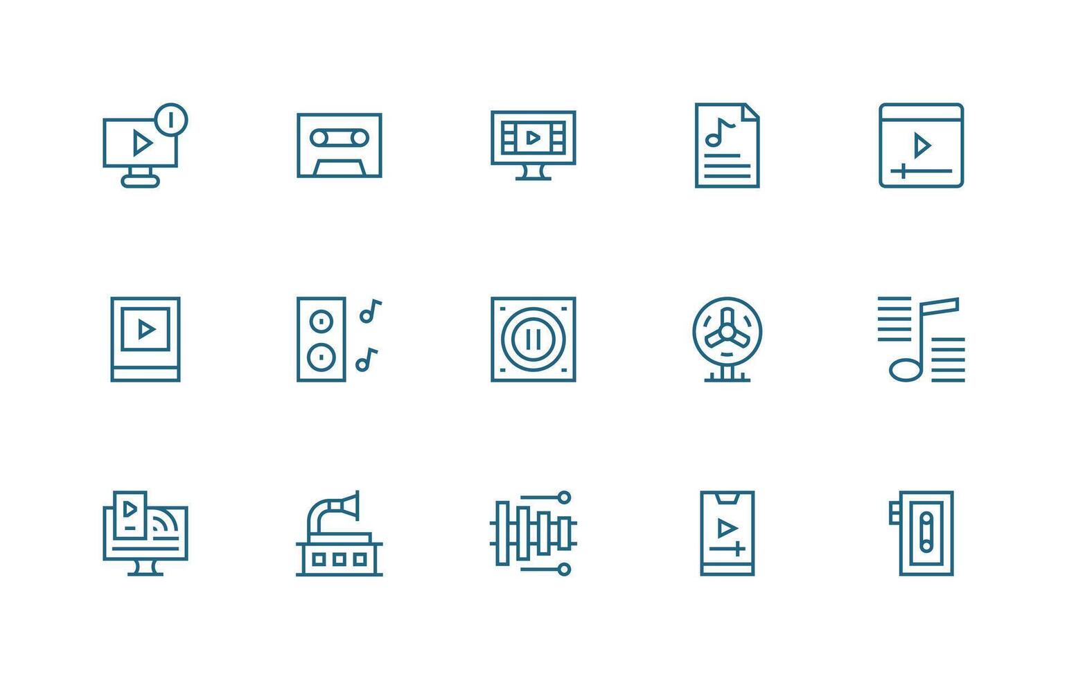 15 Regular Line Style Icons from Playback Collection Icon Pack for Various Themes Free Vector