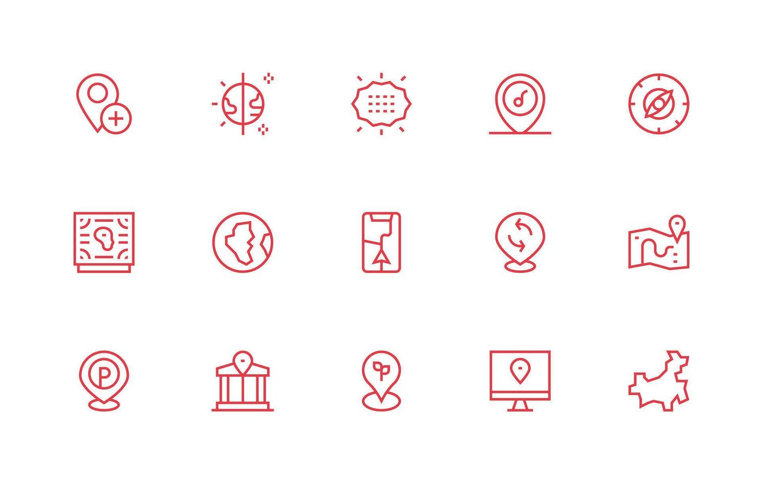 Map Visual Pack containing 15 Regular Line Icons High-Resolution Icons for Any Platform vector