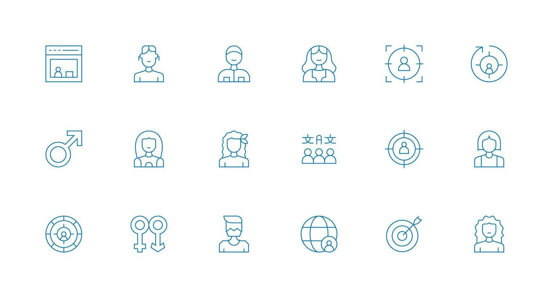 Demographic Icon Set with 18 Minimal Line Graphics Basic Icon Series vector