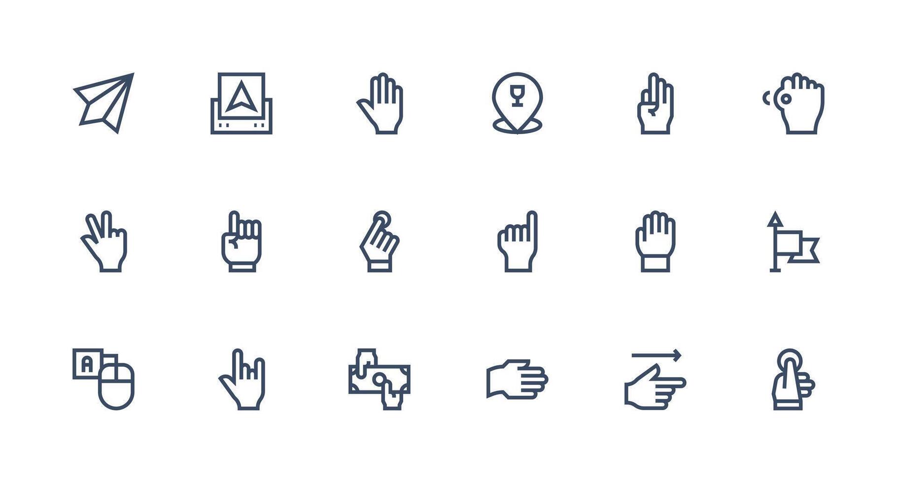 Pointer featuring 18 Icons in Strong Stroke Line Design Layout Icon Collection Free Vector