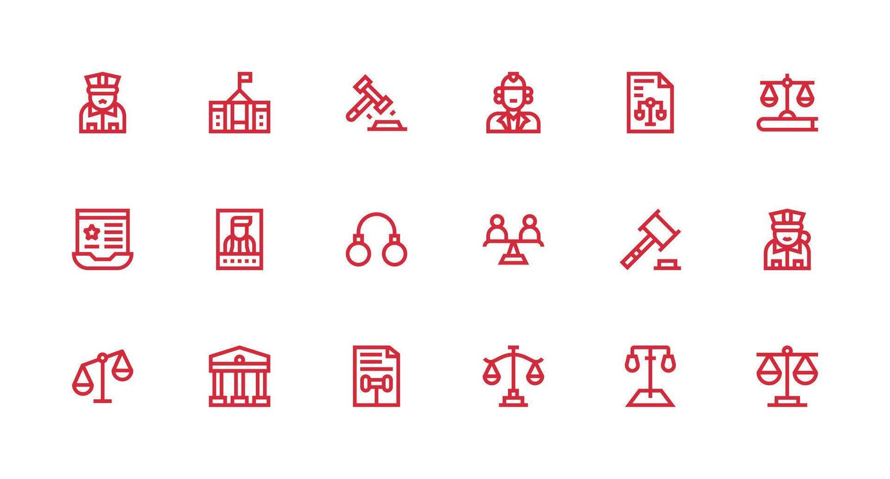 Justice Design Icons featuring 18 in Strong Stroke Line Style Quick Access Icons for UI Development Free Vector