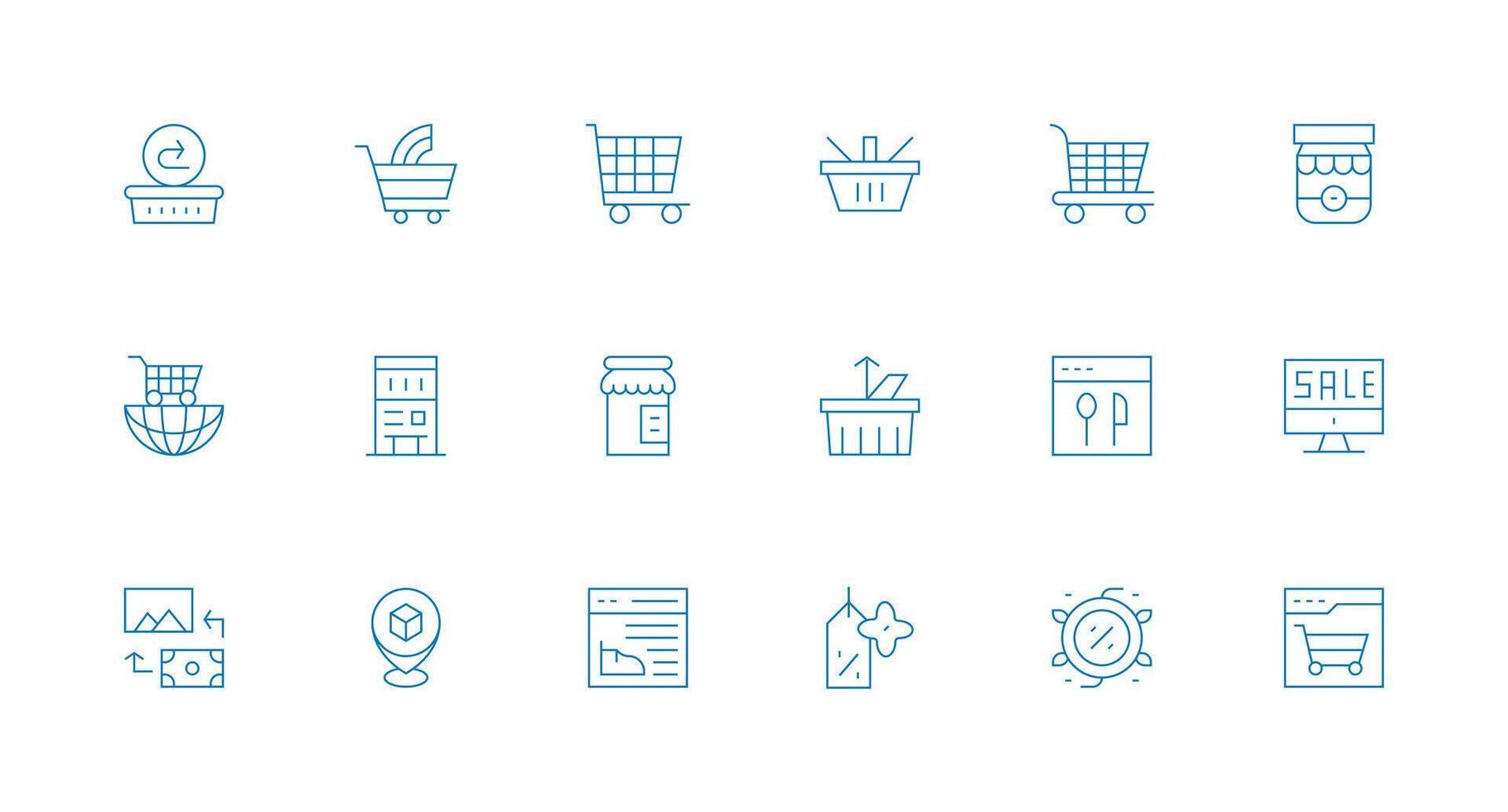 Minimal Line Icons from Online Store Set with 18 Vectors Responsive Icon Set for Flexible Layouts Free Vector