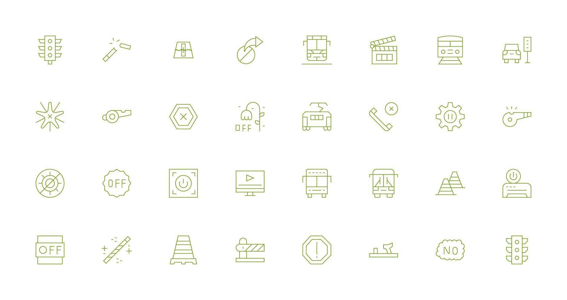 Stop Design Icons featuring 32 in Thin Line Style Web and App Icon Pack Collection vector