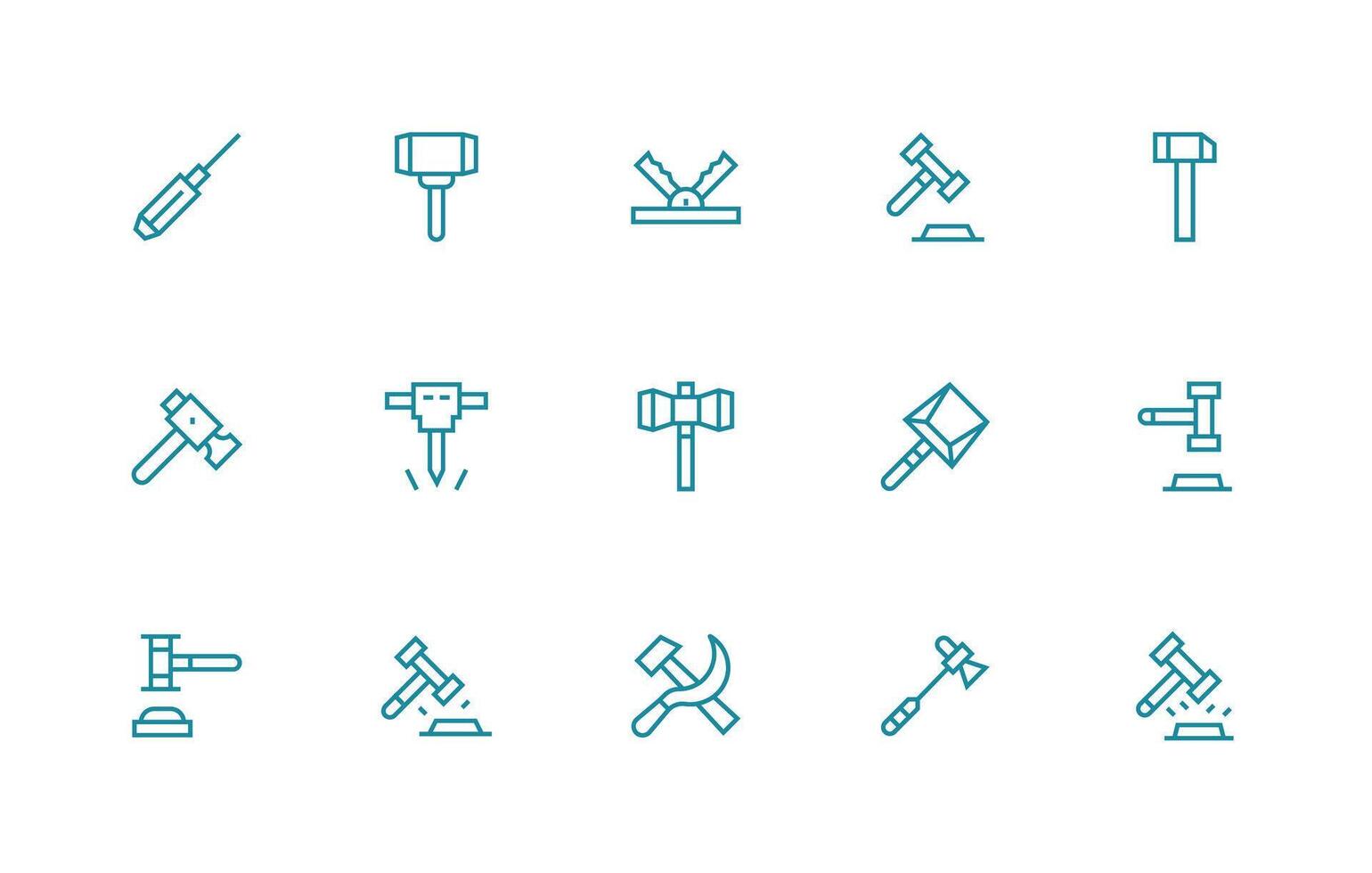 15 Icons for Hammer in Regular Line Format Quick Access Icons for UI Development vector