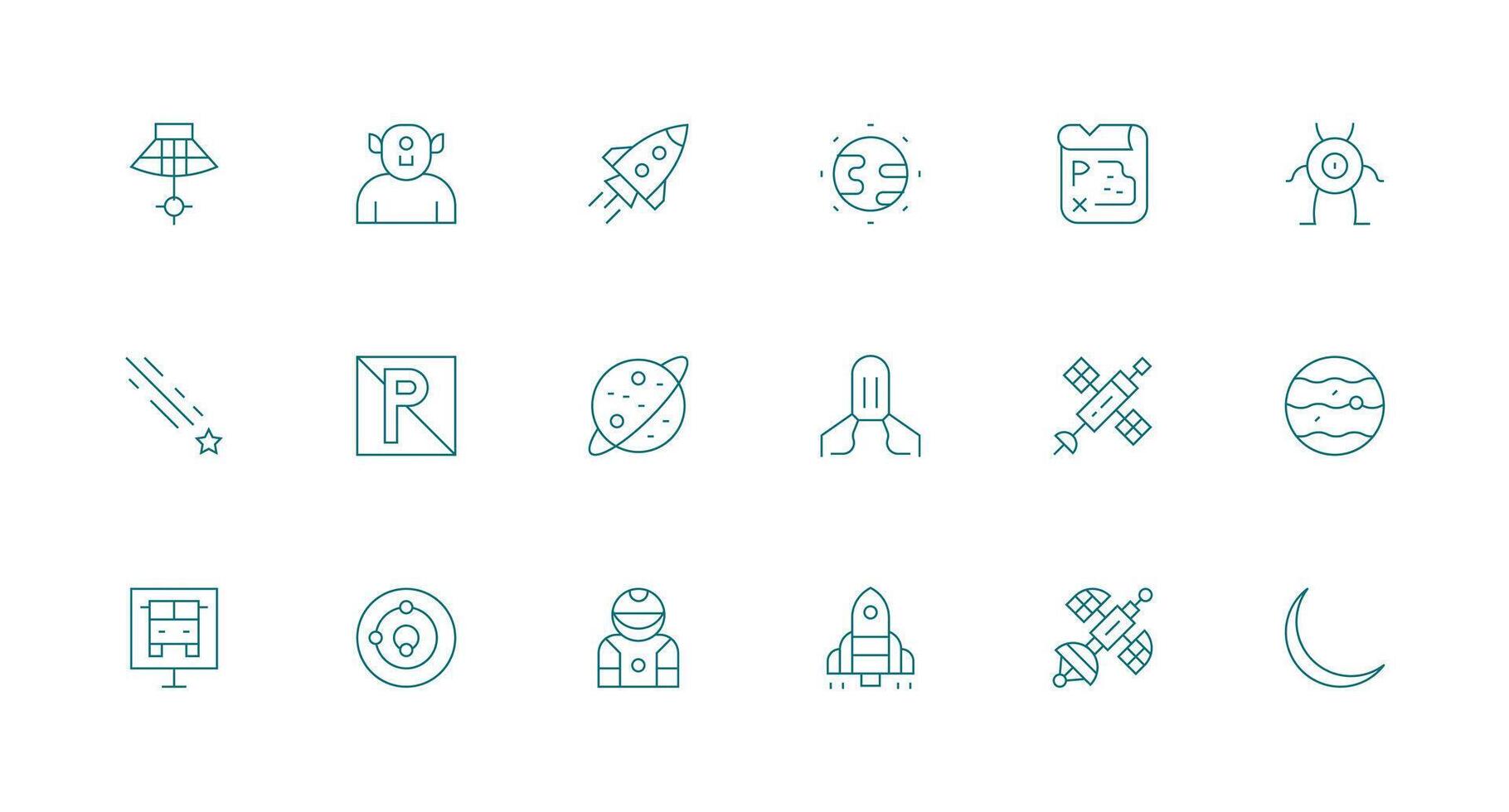 Space Icon Collection with 18 Minimal Line Designs Core Icon Collection for Daily Tasks Free Vector