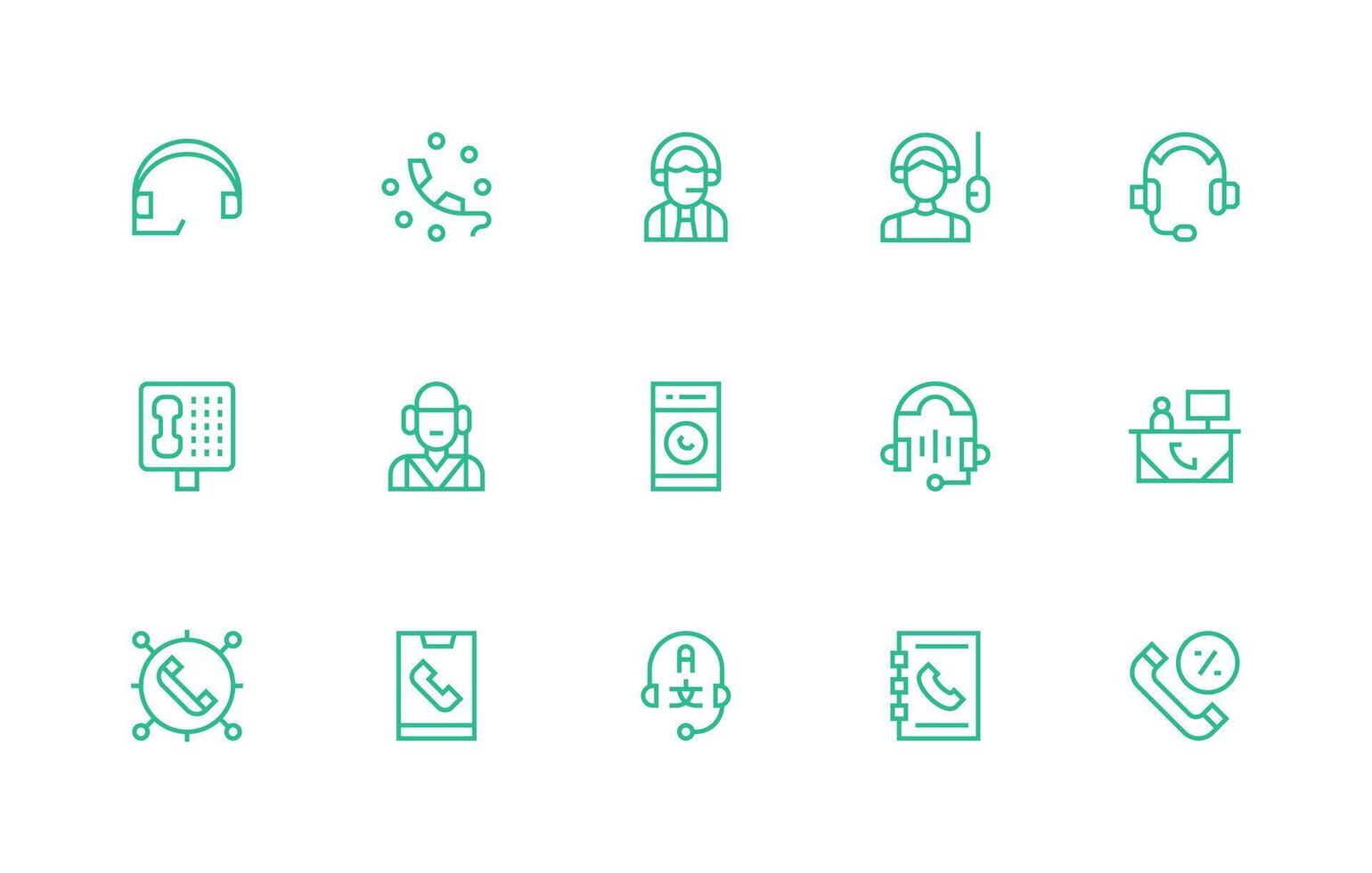 Regular Line Style Call Center Icons with 15 Vectors Web Icon Collection