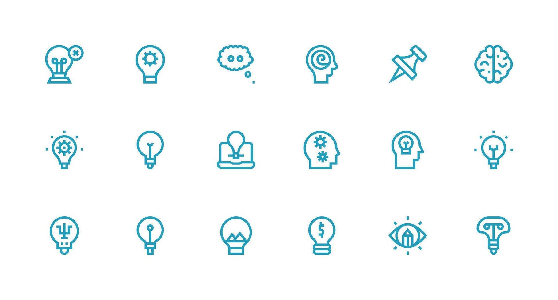 Strong Stroke Line Style Idea Icons with 18 Vectors Icon Set for Web