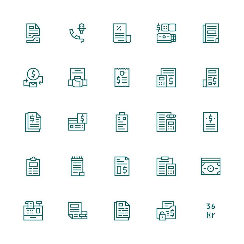 Invoice Set with 25 Medium Stroke Outline Icons Multi-Style Icons for Creative Projects Free Vector